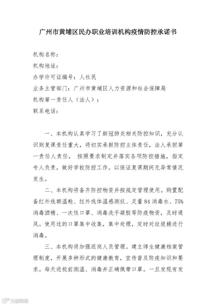 3.广州市黄埔区民办职业培训机构疫情防控承诺书