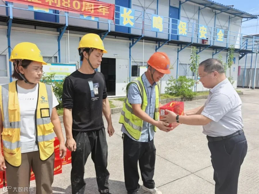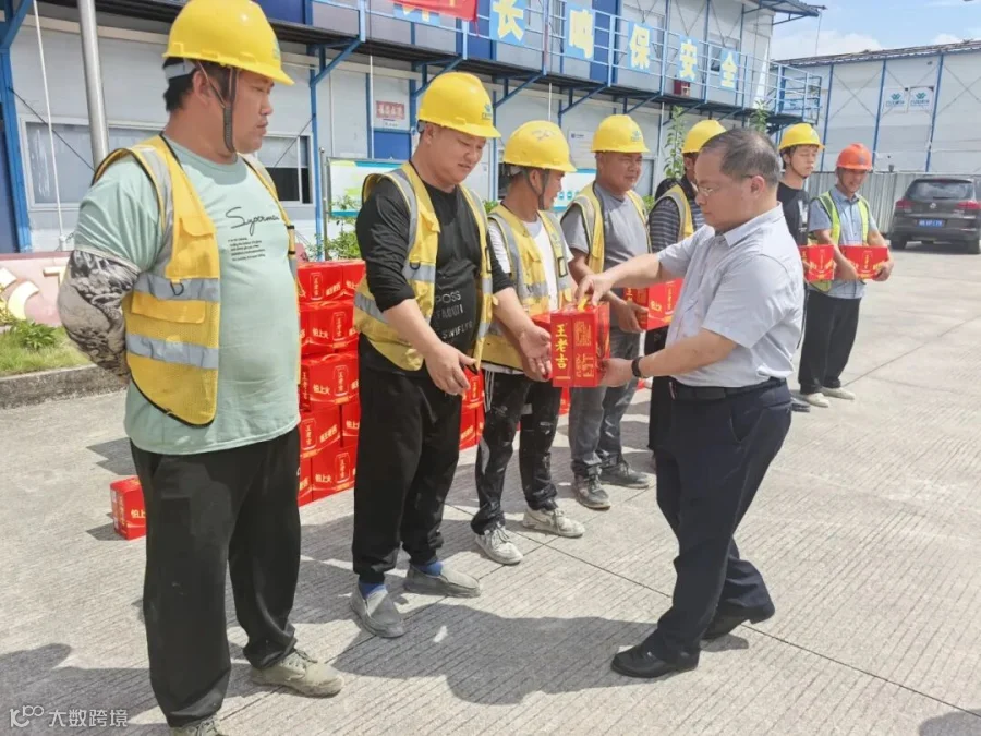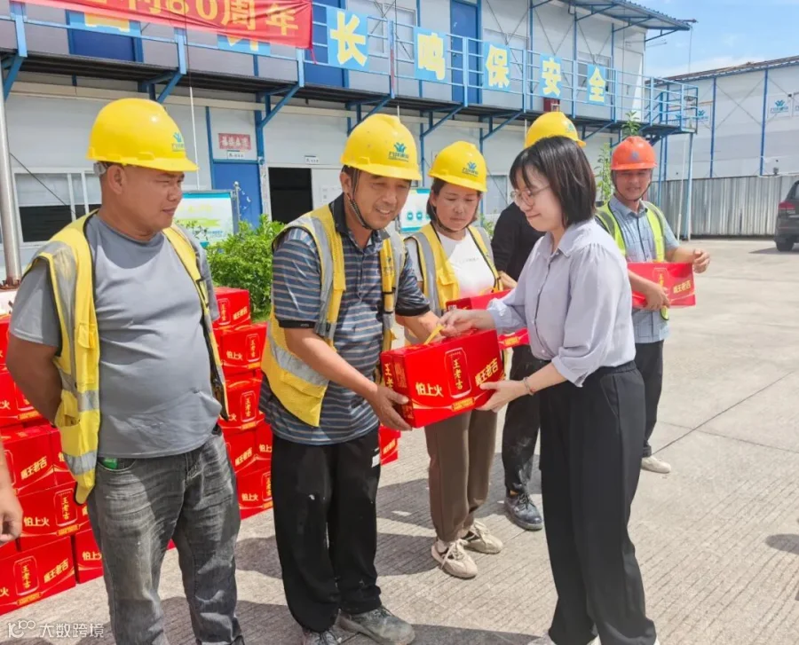 活动中,慰问组向奋战在高温一线的基层劳动者送上精心准备的防暑降温物资,并嘱咐大家在施工过程要注意防暑降温,合理安排工作时间,既要完成好本职工作,也要保重身体。
