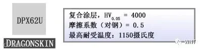 最新的 Dragonskin 涂层技术 DPX62U 具有高耐温性,耐受至 800 °C 的高温,是基于氮铝化钛开发的高硬加工专用涂层。