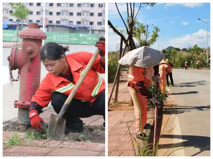 35度高温炙烤下的园区,绿意盎然却也杂草丛生,为确保园区环境整洁优美,科德汇公司的工人们迅速集结,全力投入到除草和日常维护的“战斗”中,草帽、手套、防晒服、除草工具,是他们的“战斗装备”。烈日下,汗水顺着黝黑的脸颊滑落,衣衫早已湿透,他们却无暇擦拭,每一次俯身,每一次发力,只为让园区的绿意更加整齐,环境更加宜人。