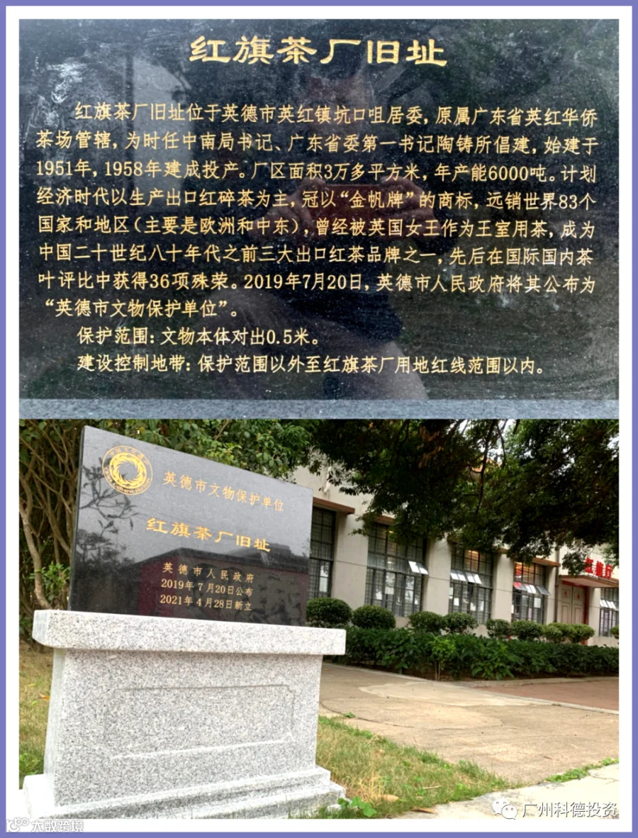 导读:英德市人民政府为红旗茶厂设立“英德市文物保护单位”标志碑