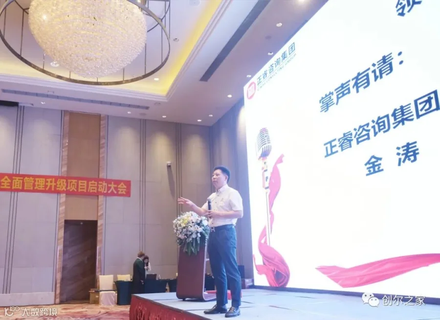 其后是项目承接单位正睿咨询集团创始人&董事长金涛先生讲话,金董指出,企业要有危机感,做企业追求的是不断精进、追求卓越的过程,不可能一劳永逸,需要不断革新。企业管理是为了把企业做长久,战略规划解决了企业做大的问题,经营解决企业利润保障的问题,只有管理跟上了,企业才能做长久。企业未来到底能走多远,取决于我们的管理模式和机制。因而需要管理升级,管理升级是让战略、经营、管理一体化,实现1+1大于 11的管理系统,共同构建能帮助公司做大做强做久的一个完美的管理系统。这需要大家一起参与进来,并肩作战,同进退,共发展,共同创造美好的未来!