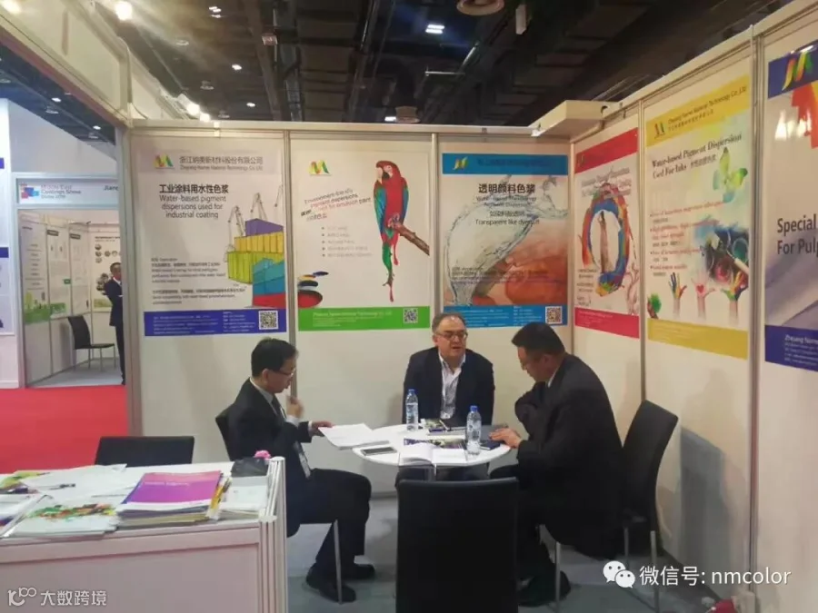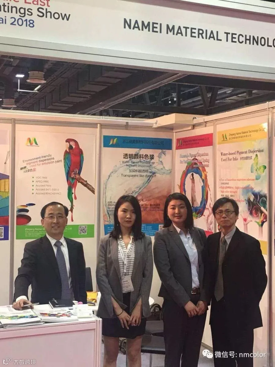 2017年阿联酋迪拜国际涂料展,展览面积约4,000平方米,300家参展商,共吸引了来自83个国家的5,000多位涂料行业专业人士观展,无论是参展企业数量、参观观众人数,还是展出面积,均较上届展会有了较大幅度的增长,展出效果十分出色。纳美董事长赵总携好友以及我们外贸部同事一起参加此次涂料展。