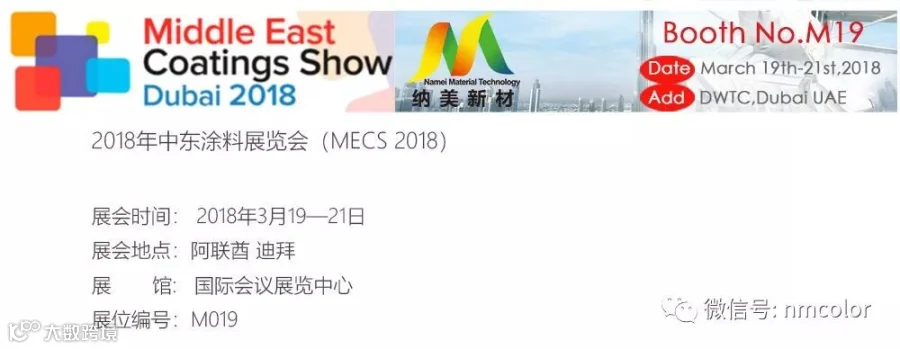 阿联酋迪拜国际涂料展(MECS2018)已于2018年3月19至21日在阿联酋迪拜举办,每年一届,目前已成为中东及海湾地区重要的涂料专业展览会。