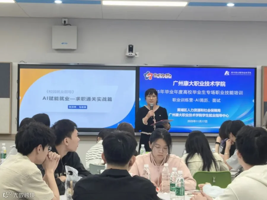 为搭建求职竞争力提升与创业资源对接的双向桥梁,助力求职者精准运用数字化工具强化岗位适配能力、创业者高效链接政策红利与产业资源,切实把握数字化转型与政策扶持的双重机遇,11月17日,广州康大职业技术学院联合黄埔区人力资源与社会保障局在综合楼208开展职业技能培训,活动由徐佳佳老师主持,马晓蓉老师主讲。