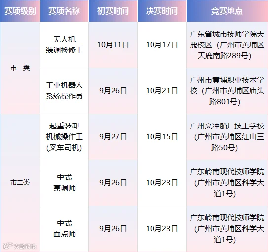 起重装卸机械操作工(叉车司机)、中式烹调师、中式面点师赛项面向全广州开发区、黄埔区企业职工接收报名。详细通知可戳下面网址或二维码: