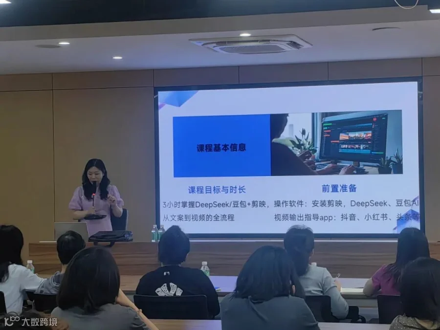 本次培训特邀创业培训资深老师黄玉娴老师进行授课。黄老师以“AI驱动创意,技术赋能内容”为主题,通过理论、案例与实操相结合的授课模式,系统讲解AI工具在短视频制作全流程中的应用场景,并重点将创业的实战经历融入课程中,围绕AI剧本生成、智能剪辑、AI配音及特效生成等前沿技术模块,结合电商带货、品牌营销和文旅推广等热门领域典型案例,拆解爆款短视频的AI“秘诀”,演示如何通过AI工具实现短视频创业降本增效。