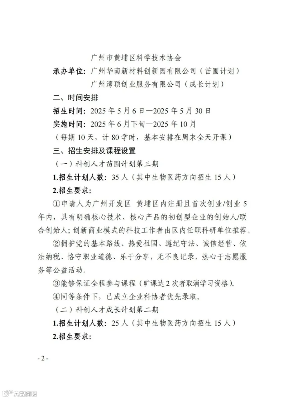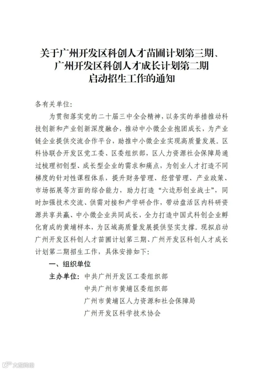 关于广州开发区科创人才苗圃计划第三期、广州开发区科创人才成长计划第二期启动招生工作的通知