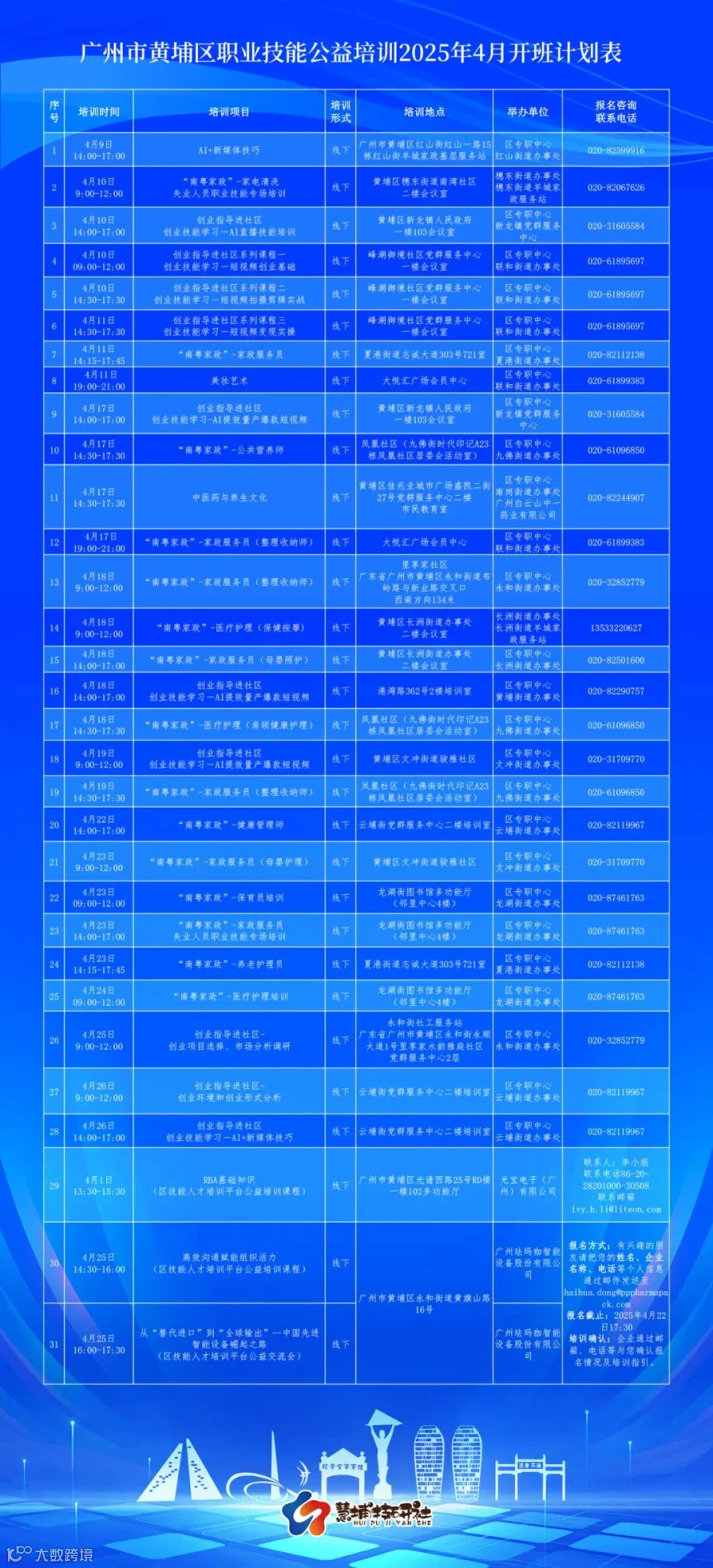 ▲上下滑动,查看黄埔区职业技能公益培训2025年4月开班计划表