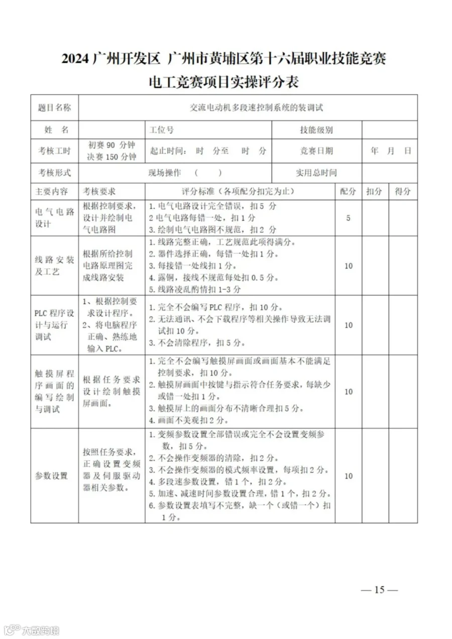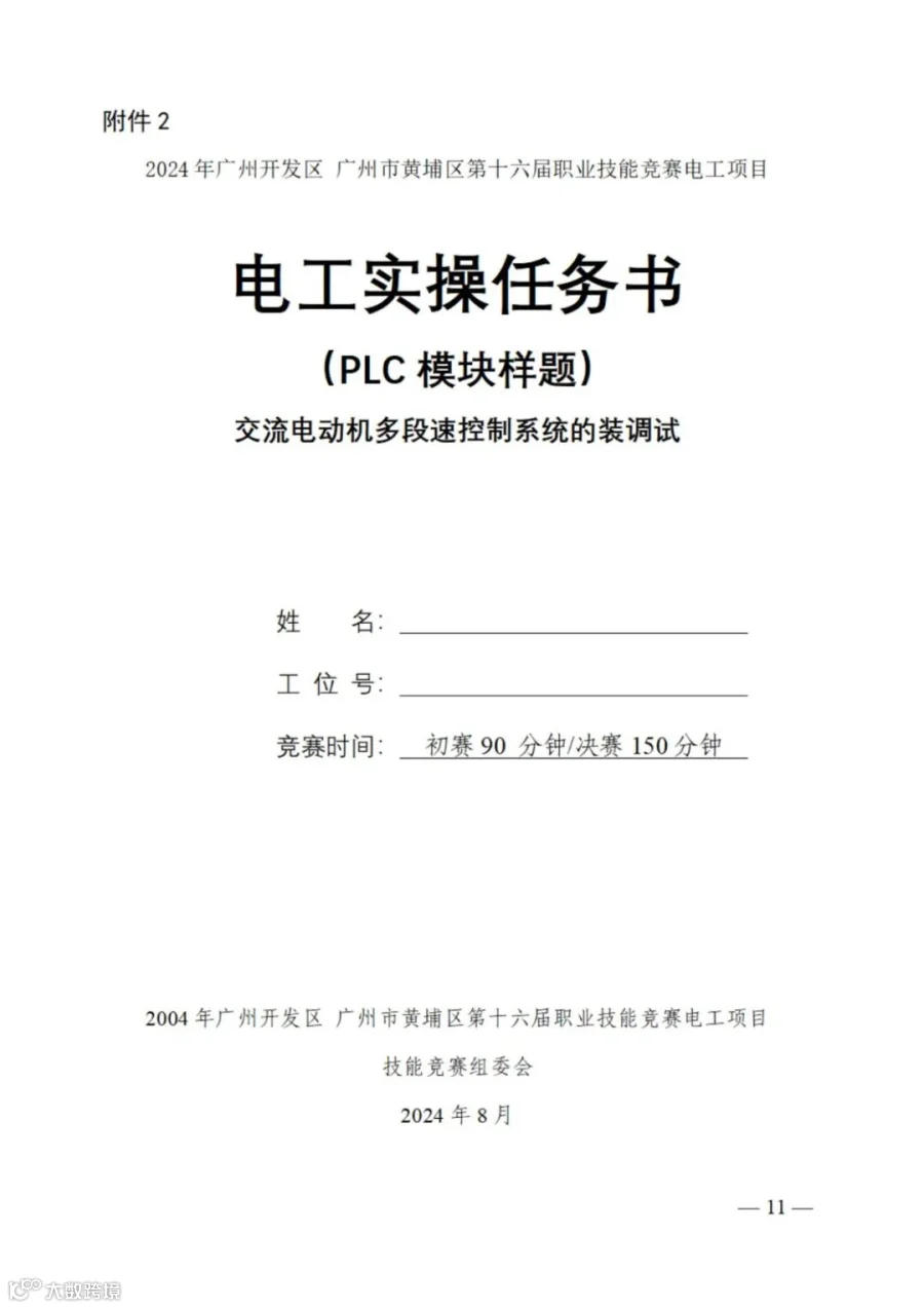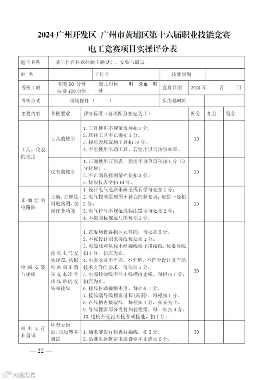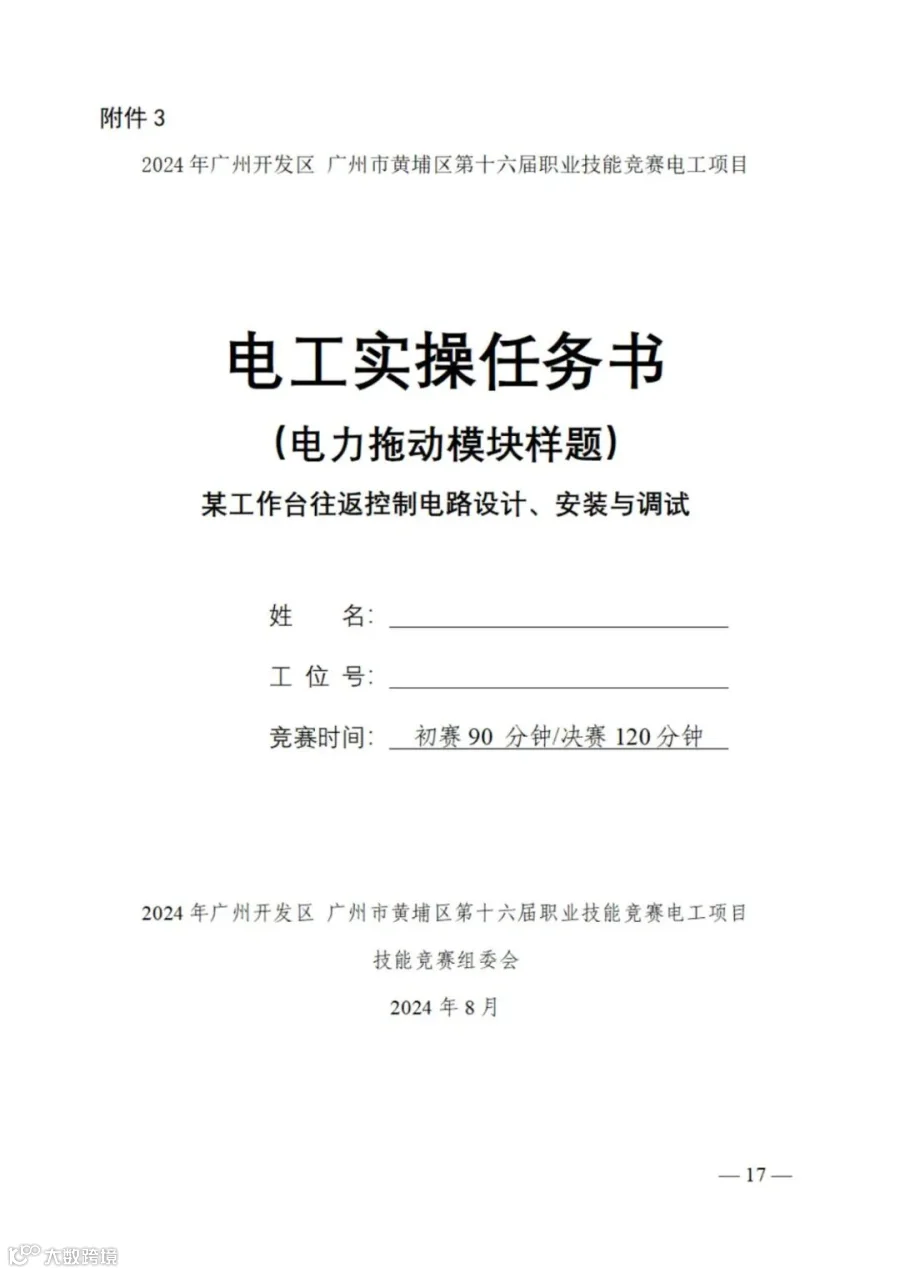 2024年广州开发区 广州市黄埔区第十六届职业技能竞赛电工竞赛项目技术文件