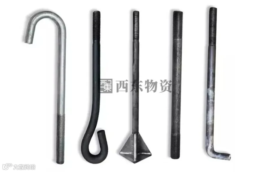 弯钩型地脚螺栓:杆部末端有弯钩(如 90°、180° 弯钩),增强与混凝土的咬合度,防止拔出,多用于建筑结构。