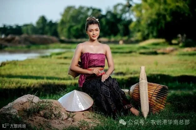 Krama:也称为克拉玛,是一种平铺布带,可以用来围腰、做头巾或肩带等,这种布料通常由棉或丝绸制成,具有复杂的图案和色彩。