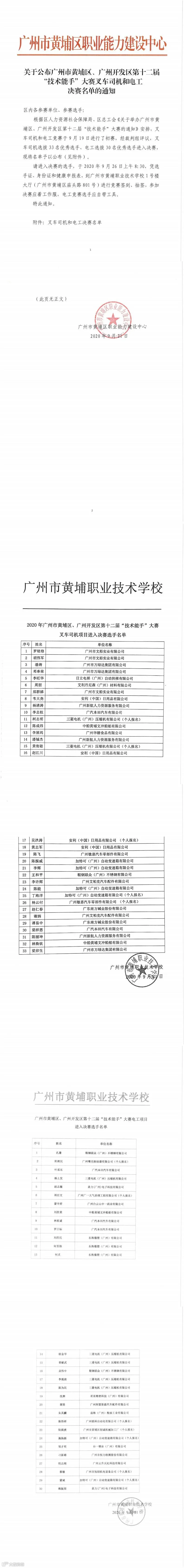市黄埔区、广州开发区第十二届"技术能手"大赛叉车司机和电工决赛名单的通知