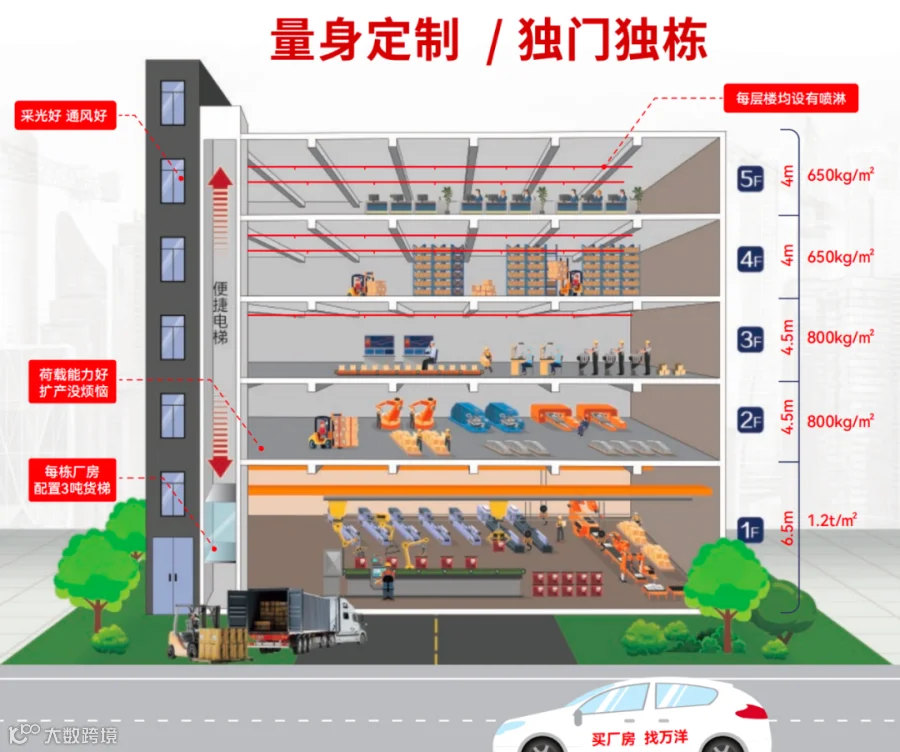 灵活性高的省级高标准定制厂房,层高、荷载:一楼 6.5 m、1.2T/m²;二三楼 4.5 m、0.8T/m²;四五楼 4 m,0.65T/m²,满足美妆日化企业生产所需。园区现成污水处理厂,处理规模达到日排污水2万吨,充足排污指标,可办理独立产权与牌照。