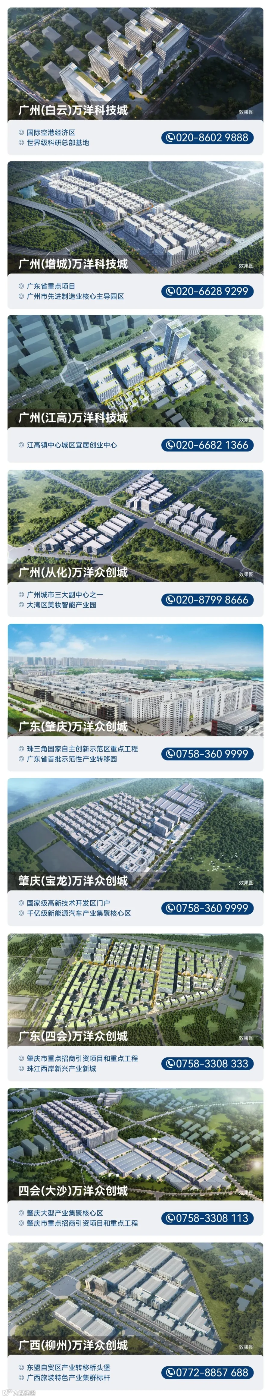 广州(从化)万洋众创城是万洋集团落地广州的第二个项目,项目位于从化主城区明珠工业园板块,占地面积约260亩,总建筑面积约40万方,共分三期开发,规划产业园区、人才公寓、生活超市、中央食堂等致力于为园内蓝领提供优质、完善、便利的工作生活环境。项目计划总投资约20亿元,预计引进200家企业,提供10000个工作岗位。