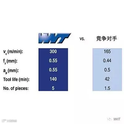通过使用WNT dragonskin 涂层 DCX1230刀片,刀具的使用寿命是原来的四倍,现在可以生产5个零件而不是原先的1.5个零件!