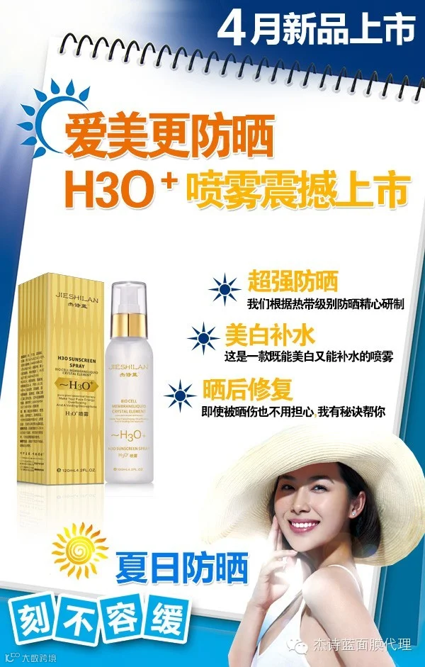 杰诗蓝H3O+防晒喷雾,长效防晒,保湿不油腻;