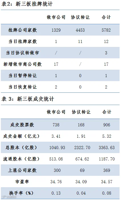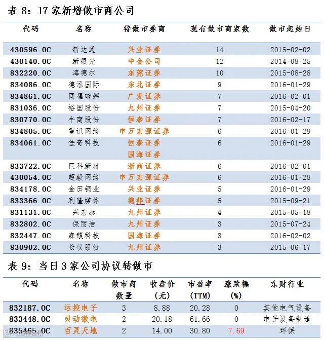 3家协议转做市,17家公司新增做市商
