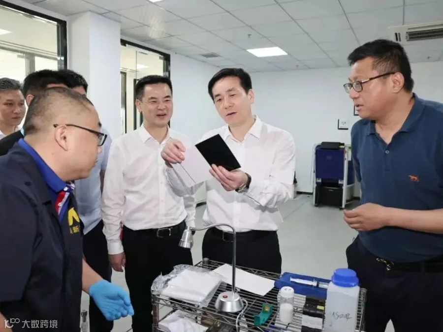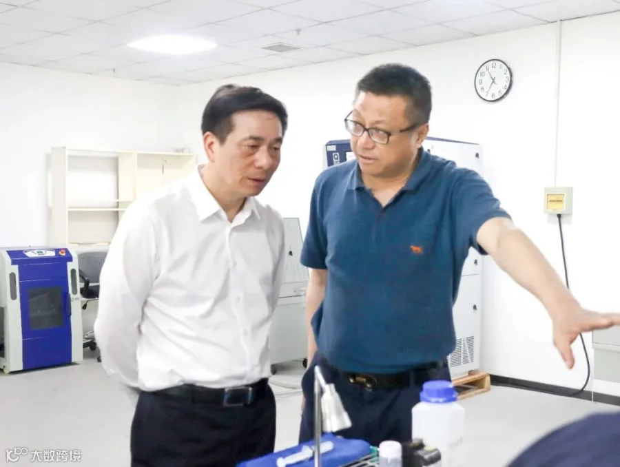在打印测试室,陈浩书记饶有兴趣的观看了正在测试的防伪喷墨墨水,并与在场的荷兰专家进行了深入的交谈,当得知新产品质量好、性价比高,很受客户欢迎后。陈浩高兴的鼓励企业坚持走创新发展的道路,坚持走国内国际双循环道路。并对纳美新材在研发上的持续高投入表示赞赏,对企业在逆势坚持创新发展的企业家精神表示了充分的肯定。