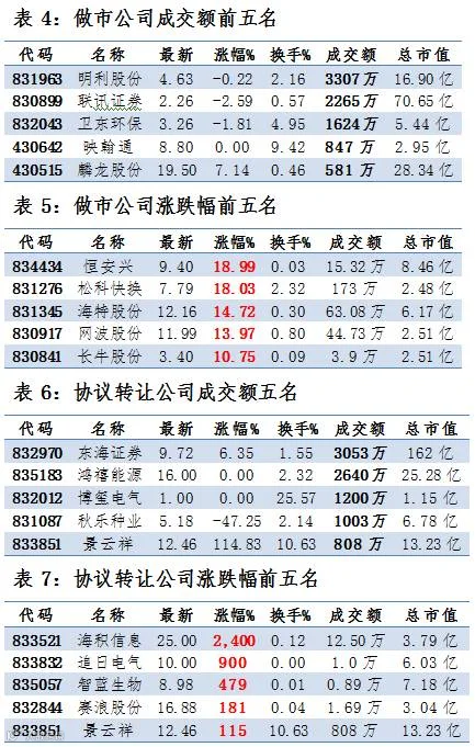 恒安兴、松科快换、海特股份涨幅居前,分别为18.99%、18.03%和14.72%。相比之下,爱迪新能、富电绿能、金化高容跌幅居前,分别为16.04%、11.33%和8.00%。