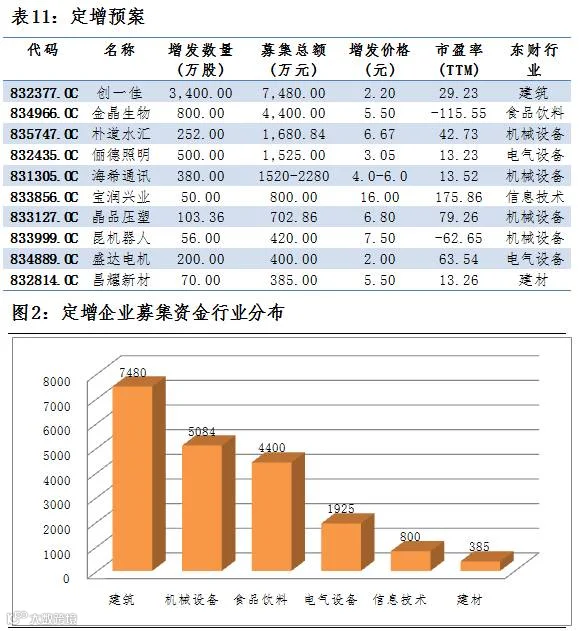 点评:2月19日,共有10家公司公布定增预案,总增发股数5811万股,共募集资金2亿元。募集资金最大为创一佳,募集资金7480万元,总体来看,募集金额流向建筑行业较多。
