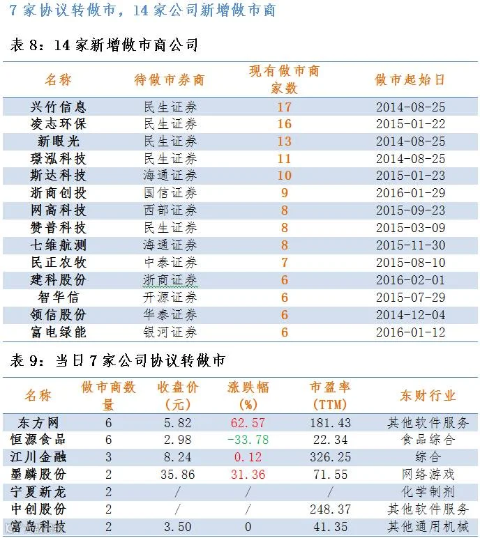 做市成交方面: