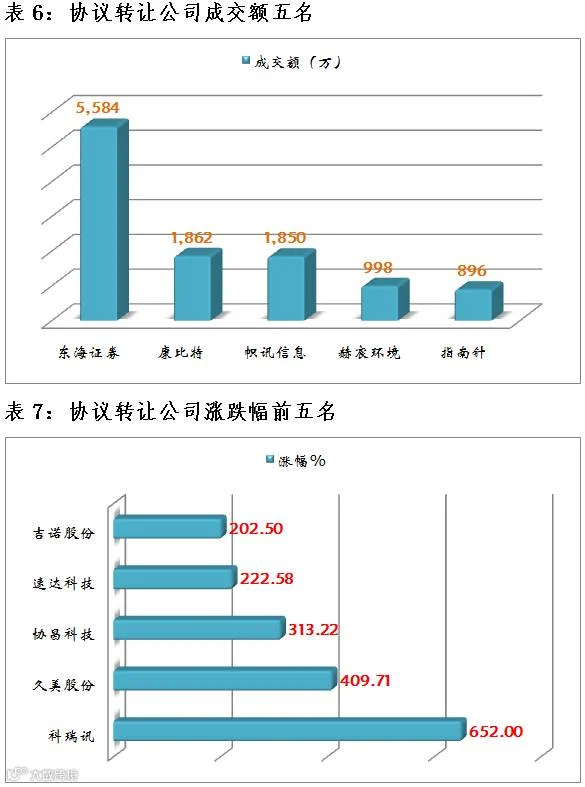 3月11日937只股票成交,总成交额5.40亿元。其中做市成交3.32亿;协议成交2.07亿元。