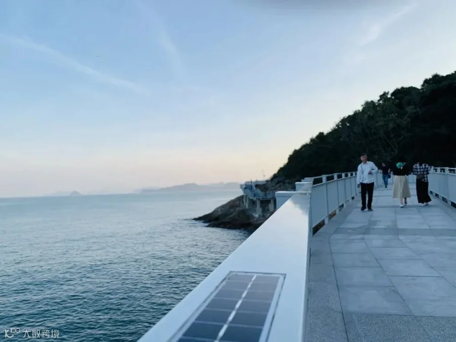 活动参加人员沿着沙滩-海滨栈道徒步,