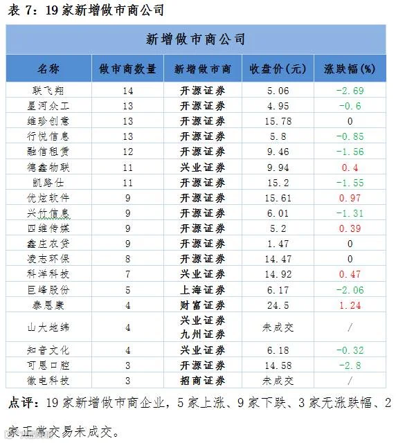 做市企业中有449只个股参与交易,其中208只个股上涨。当日2家做市企业成交额破千万。分别是联讯证券与益盟股份,分别成交1.09亿元和1424万元。