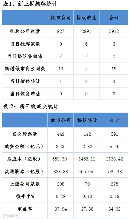 昨日三板总成交额回落至5.40亿,其中做市公司成交3.06亿、协议转让公司成交达2.33亿元。