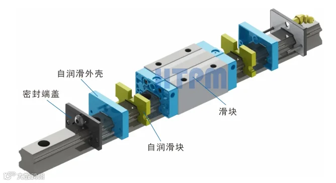 自润滑块是一种新型的多孔高分子材料与润滑油脂一体成型的润滑部件,安装在滑块两端,通过与导轨沟槽面接触,不间断释出新鲜的润滑油,从而实现导轨副润滑。
