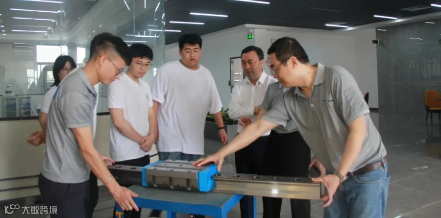 调研期间,区领导与华南农业大学一行深入车间、科研中心进行深入交流,详细了解产品特性、技术优势、工艺制造等,并就企业的技术革新与质量检测环节提升进行了交流与讨论,同时,在总工程师冯健文带领下,体验了产品运动原理。