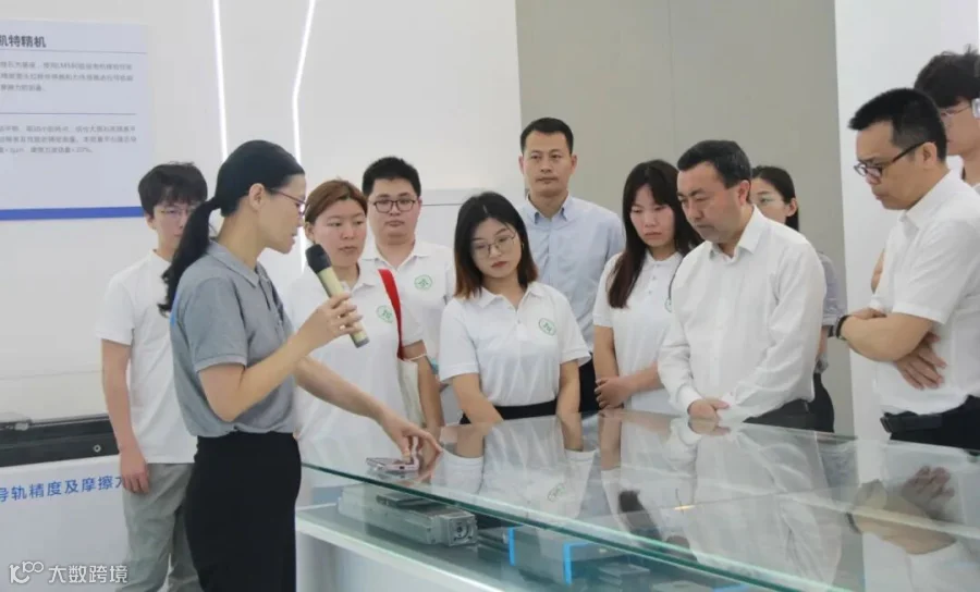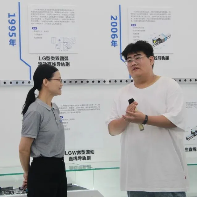 莅临参观的区领导及华南农业大学师生代表一行首先参观了公司产品展厅,副董事长赵美玲就公司发展历程、园区建设、生产运营发展等情况进行了详细介绍;随后,围绕公司产品优势、产品应用、技术团队作了重点说明,并针对师生代表提出有关滚动功能部件行业发展、市场潜力、成果转化等问题进行回答说明。