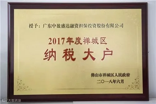 近日,佛山市禅城区人民政府授予辖区内274家纳税额1000万元以上企业“禅城区2017年度纳税大户”称号。凭借2017年度亮丽的纳税“成绩单”,中盈盛达荣获“2017年度禅城区纳税大户”称号,这也是企业连续9年年度纳税过千万。