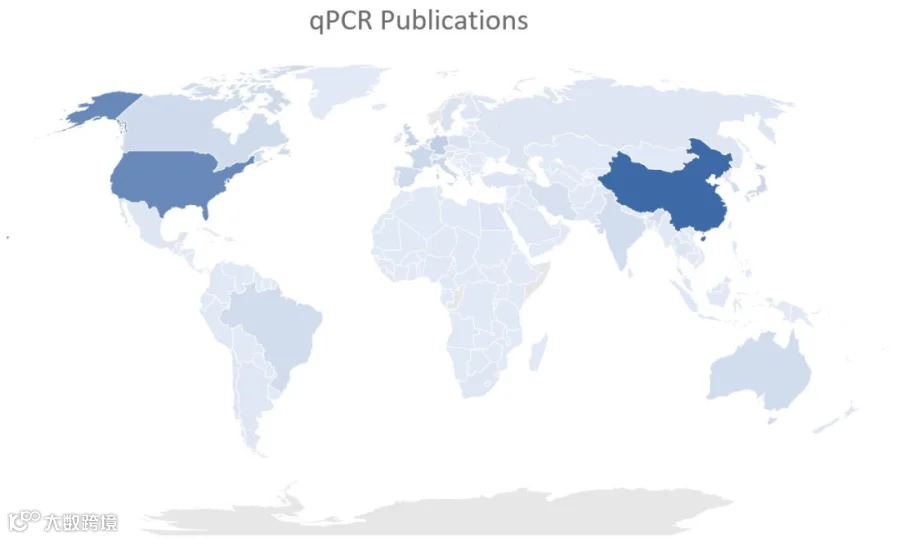 涉及“实时 荧光定量 PCR”的科学论文的全球分布概览