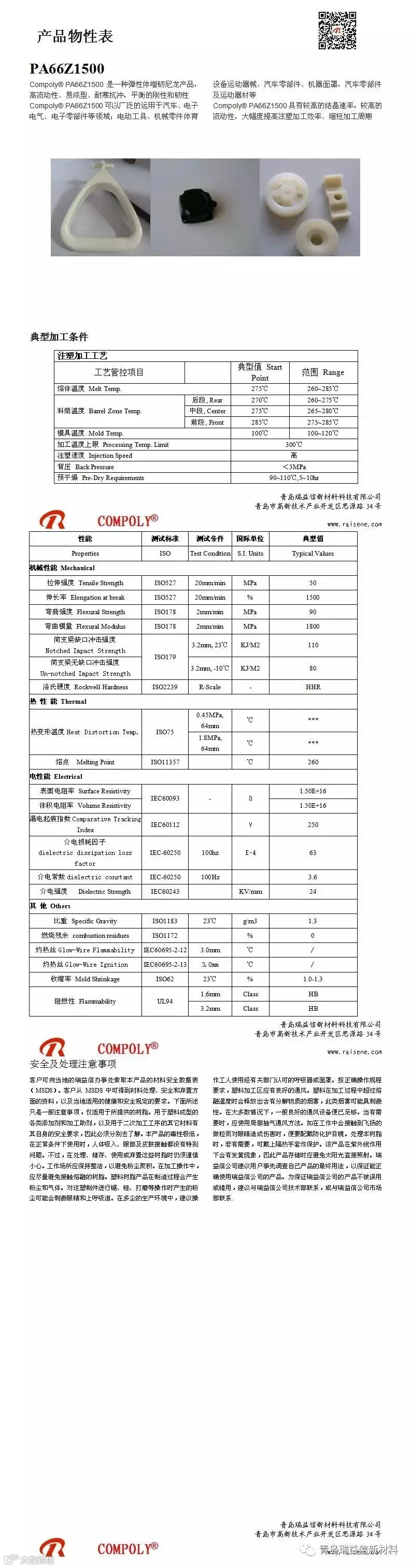 青岛瑞益信新材料Compoly® PA66Z1500 是一种弹性体增韧尼龙产品,高流动性、易成型、耐寒抗冲,平衡的刚性和韧性
