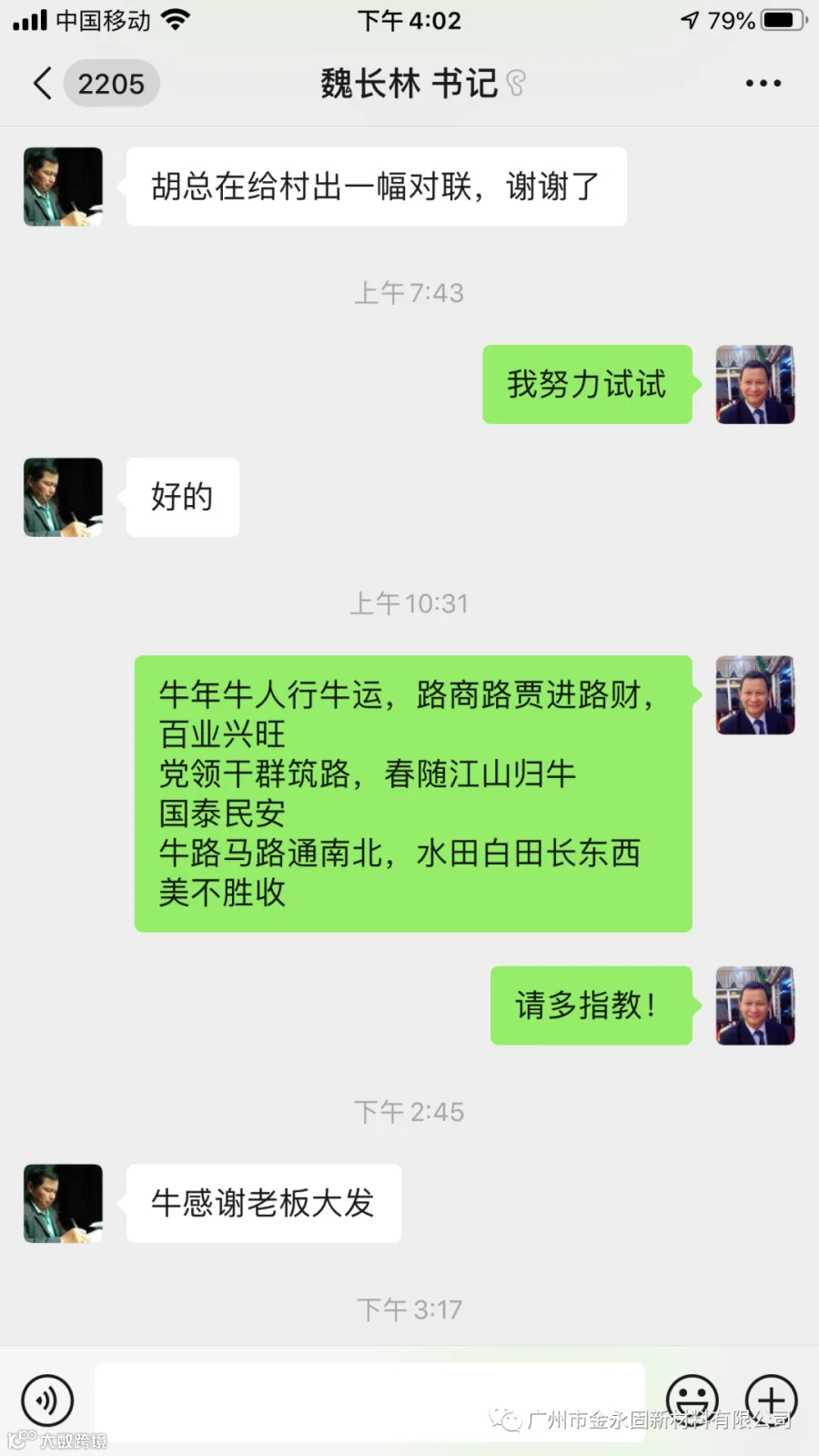 胡红兵受邀为家乡牛路村作对联