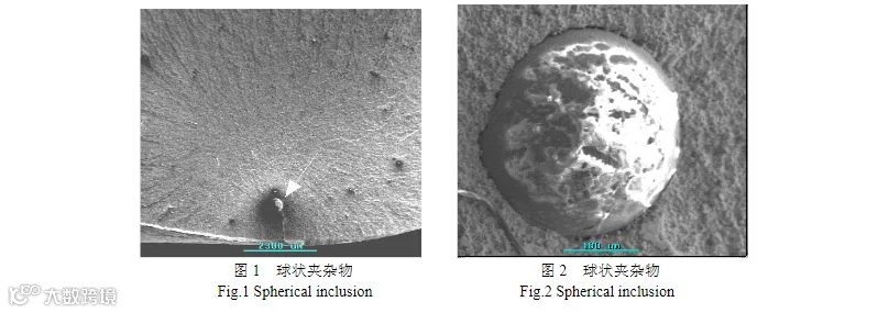 实例:某公司一件型号为SY6480(Ф22mm)的车辆悬架用扭杆弹簧,在新车出库时便发生断裂,分析认为断裂起源于弹簧亚表面存在的一个粗大脆性夹杂物(如图1,图2(图1的放大图))。