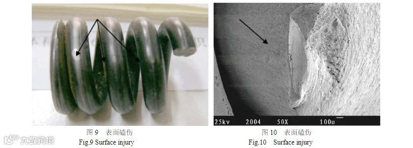 预防措施:可采取用抗腐蚀的材料或者在弹簧表面形成一个保护层的表面处理方法来解决。(3)微动磨损及碰撞磕痕、凹坑