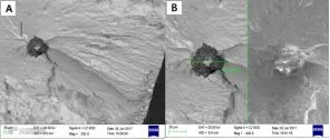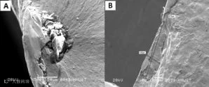 图16 气门弹簧疲劳断口上的夹杂形貌