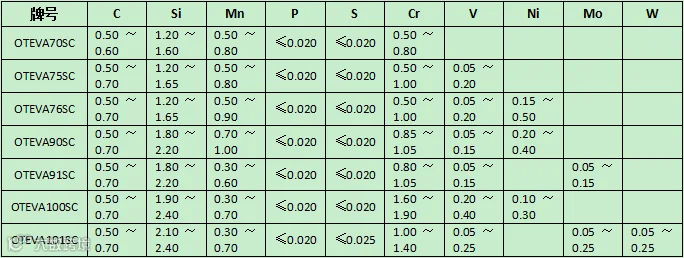 表7 日本住友电工气门弹簧钢丝牌号及其化学成分 ω/%