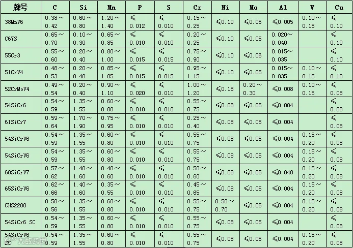 表4 德国撒斯特弹簧钢线材牌号及其化学成分 ω/%