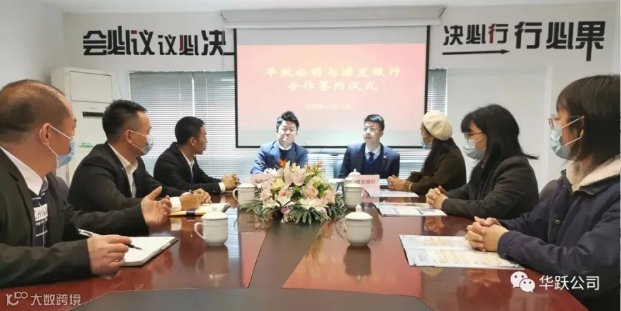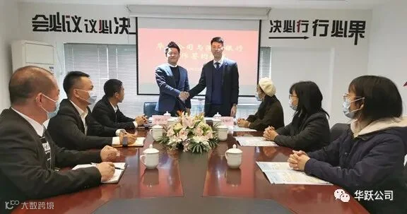 12月17日,华跃公司张功华总经理及公司相关部门负责人与浦发银行吴润辉经理一行,在华跃办公大楼举行了合作签约仪式。张功华总经理代表华跃公司对浦发银行的到来表示热烈的欢迎。此前双方领导及代表就合作事宜进行了深入的探讨与广泛的讨论,并达成一致的共识,此次的签约不单为双方合作奠定了坚实的基础,也助推了华跃公司2021年经营目标的加速实现。