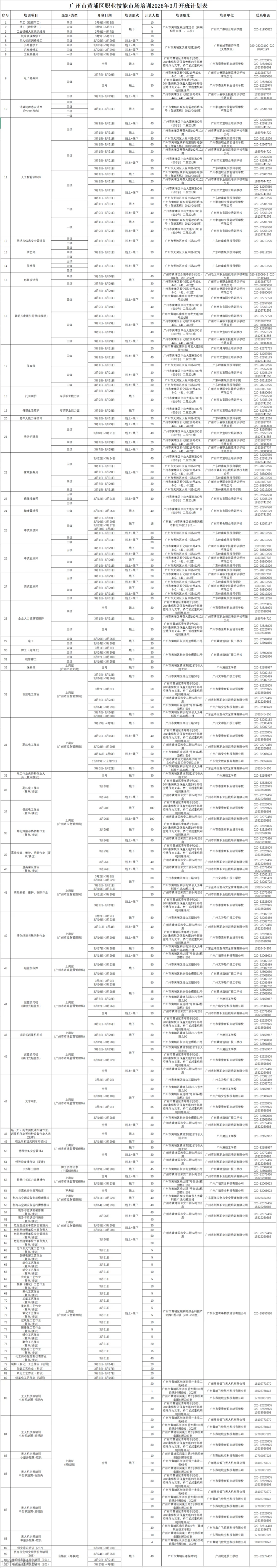 市黄埔区2026年3月职业技能市场培训开班计划如下,如需了解课程请拨打咨询电话。