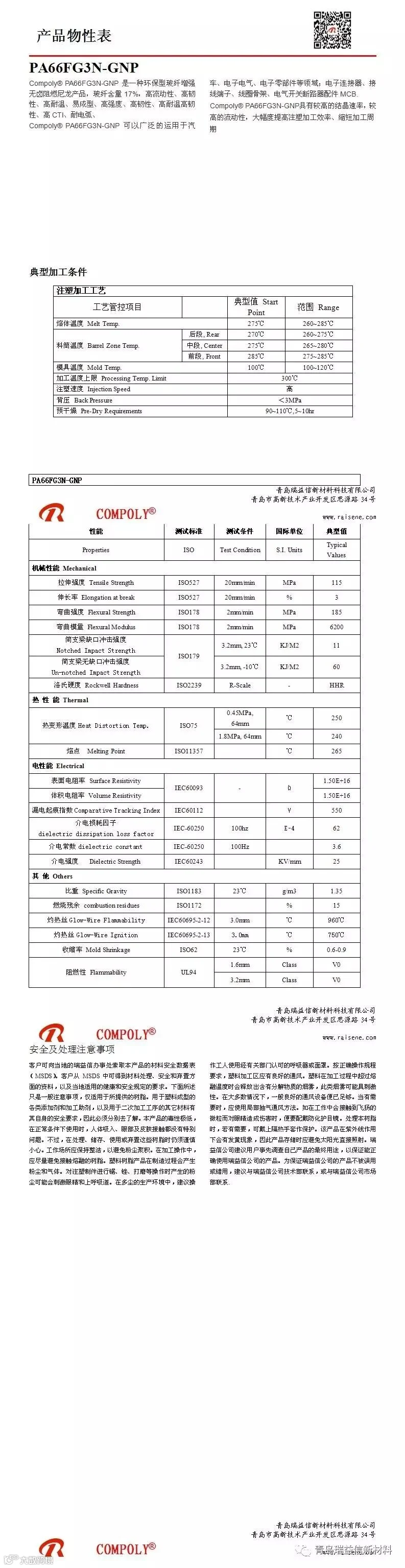 导读:Compoly® 200FG-66FG6-202S 是一种环保型阻燃增强尼龙产品,高流动性、高韧性、高耐温、易成型、高强度、高韧性、高韧性、高CTI、耐电弧、高灼热丝