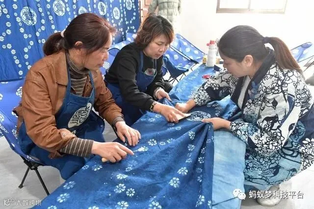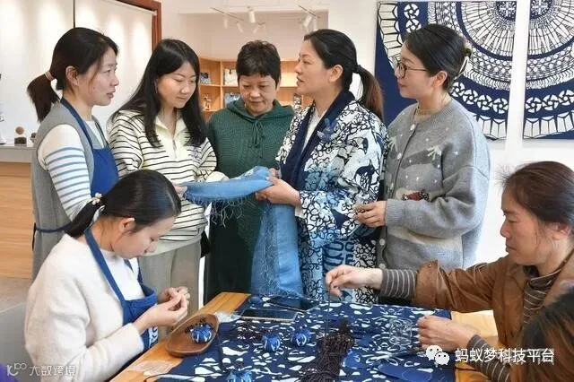 “《‘十四五’非物质文化遗产保护规划》提出,推动非遗助力乡村振兴工作,促进非遗保护传承在经济社会可持续发展中发挥更大作用。学成以后,我一直在寻找适合建设传统手工艺创业基地的村庄,让蓝印花布这项传统技艺重回大众视野。”张剑峰介绍说,振兴传统工艺,实现共同富裕,就要让非遗更好地与产业结合,将文化资源转化为生产力。为此,浙江纺织服装职业技术学院非遗科研创新团队的非遗蓝印花布项目,通过奉化区妇联对接,去年4月成立了“喜曼蓝富”共富工坊,落地奉化区西坞街道雷山村,张剑峰被聘为助富专家导师。