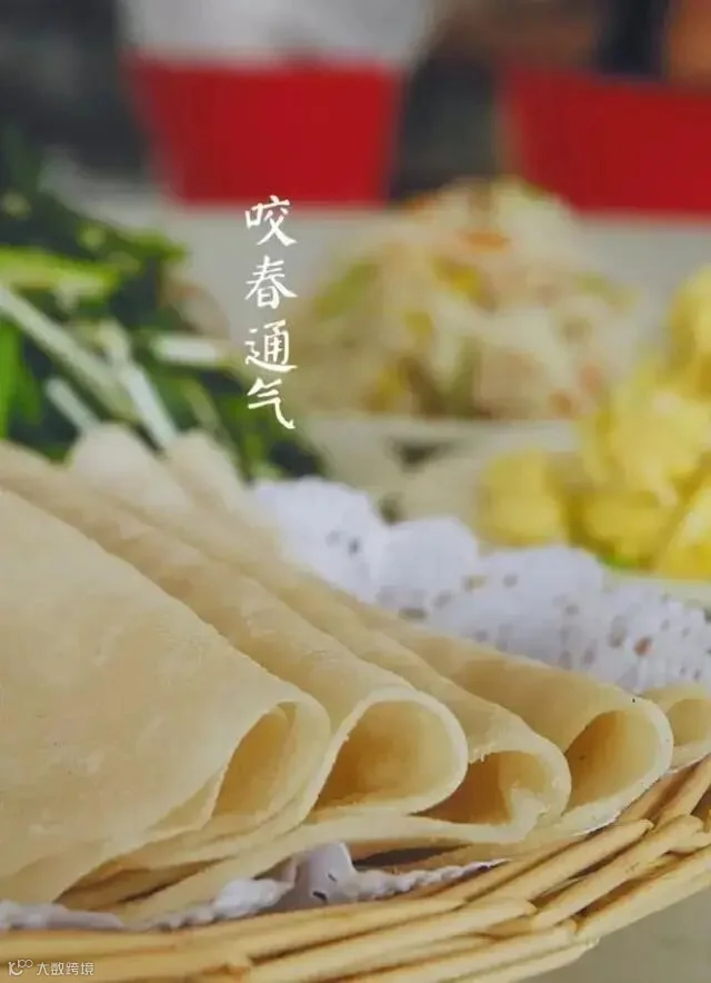 咬春是指立春日吃春盘、吃春饼、吃春卷、嚼萝卜之俗,一个“咬”字道出节令的众多食俗。春盘春饼是用蔬菜、水果、饼饵等装盘馈送亲友或自食,称为春盘。杜甫《立春》诗曰:“春日春盘细生菜,忽忆两京梅发时”。