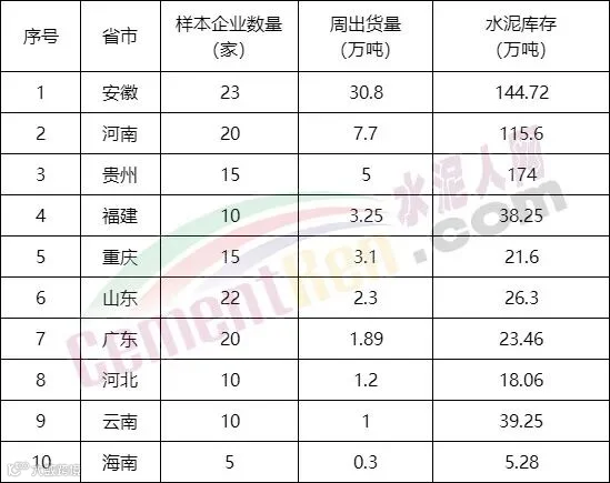 从各区域水泥出货量来看,福建、河北、河南、云南、贵州、重庆、山东、海南、广东、安徽等区域出货量较10日前稍有增加,市场略有回升。
