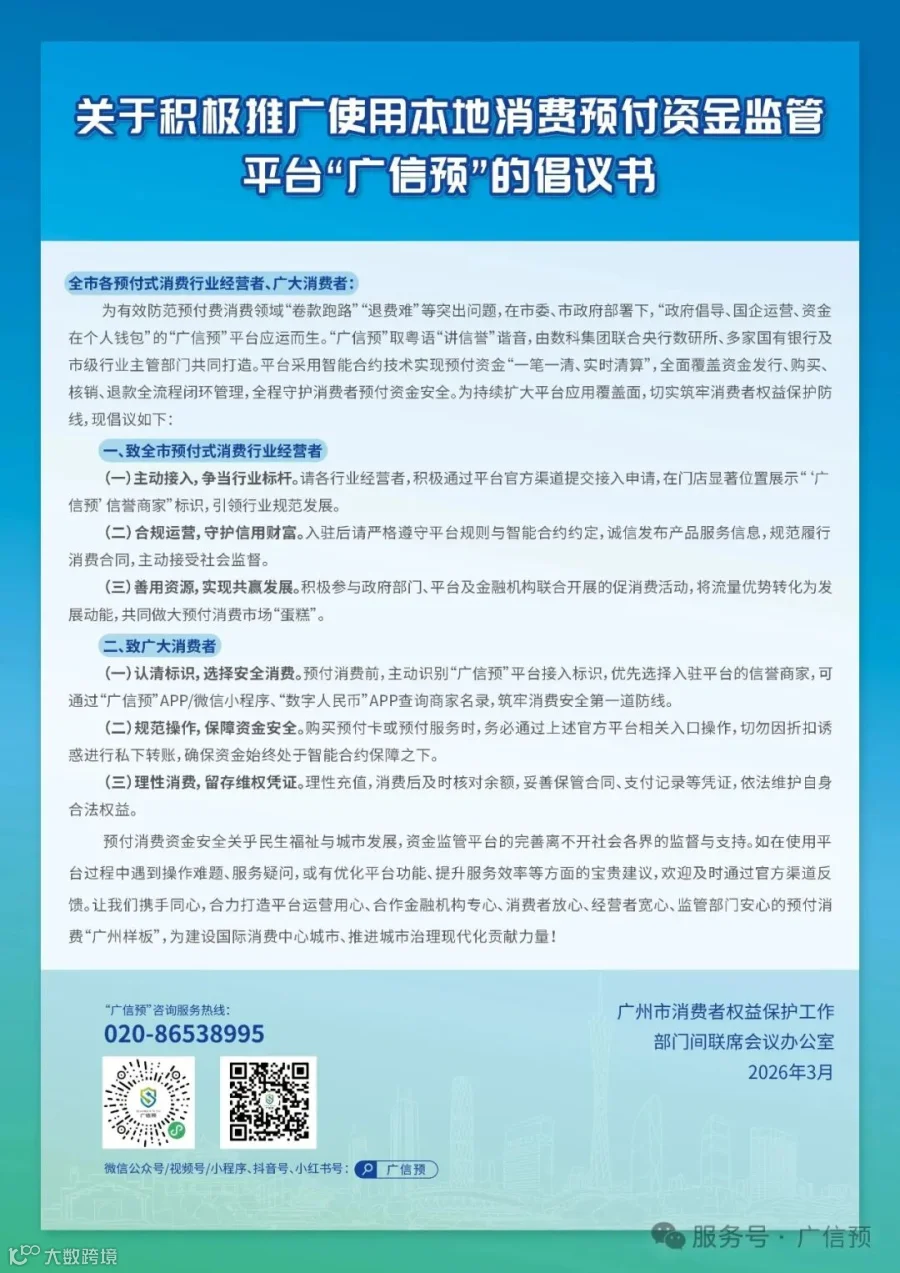 关于积极推广使用本地消费预付资金监管平台“广信预”的倡议书