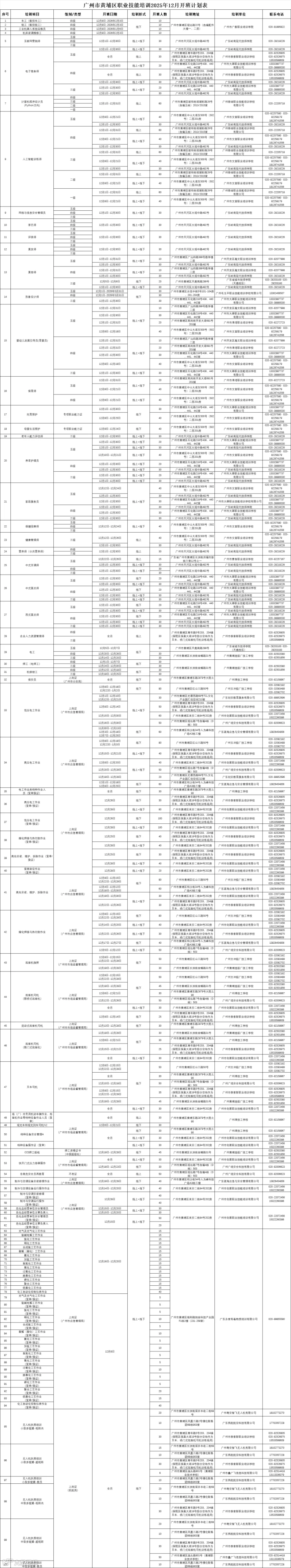市黄埔区2025年12月职业技能培训开班计划如下,如需了解课程请拨打咨询电话。